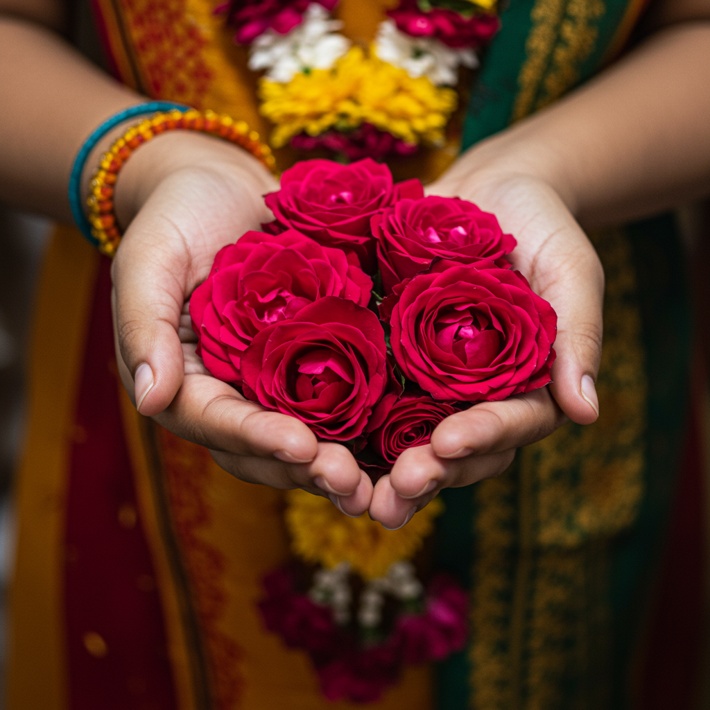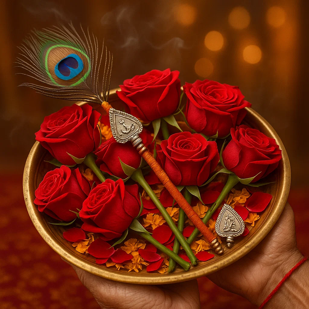 A traditional Khatu Shyam Chadawa may include: Coconut with sindoor Silver horse or crown (mukut) Flower garlands (rose & marigold) Dry fruits, sweets (churma, makhan mishri, kheer) Fruits (banana, apple, pomegranate) Turban cloth (saffron/yellow pag) Beautifully embroidered poshak (dress for Baba) Incense sticks, sandalwood paste, and “Jai Shree Shyam” flag